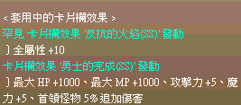 這六張卡片一共可以激發這些屬性,你可以增加2千HP、2千MP、10攻擊力、BOSS傷害追加10%、終極攻擊傷害加4%、全屬性加10、4%機率秒殺敵人、命中加8%、爆擊加4%、減傷加5%、異抗加4%,是不是超爽呢。不過要達成這樣的條件很難就是了,還要練兩隻狂豹獵人,如果真的練出來的話,不管用在哪個職業上也都很有效果喔!