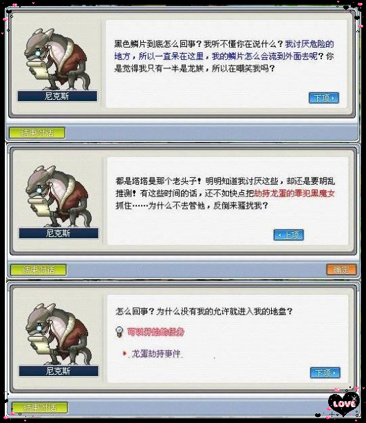 塔塔曼要调查龙蛋劫持事件,向NPC尼克斯询问,尼克斯要你消灭天鹰和喷